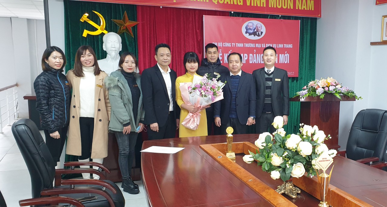 Sáng ngày 22/02/2022, được sự đồng ý của Đảng ủy khối Doanh nghiệp quận Long Biên, Chi bộ Công ty TNHH TM&DV Linh Trang đã long trọng tổ chức Lễ kết nạp đảng viên mới cho đoàn viên ưu tú Chu Thị Phương Hoa. Sau khi nhận Quyết định, trước cờ Tổ quốc, Đảng kỳ và chân dung Chủ tịch Hồ Chí Minh, đồng chí đảng viên mới Chu Thị Phương Hoa đã tuyên thệ tuyệt đối trung thành với lý tưởng cách mạng, chấp hành nghiêm chỉnh Cương lĩnh chính trị, Điều lệ Đảng, Nghị quyết, Chỉ thị của Đảng, chính sách, pháp luật của Nhà nước; không ngừng học tập nâng cao trình độ chuyên môn nghiệp vụ; tích cực tham gia công tác quần chúng, công tác xã hội, liên hệ chặt chẽ với nhân dân…